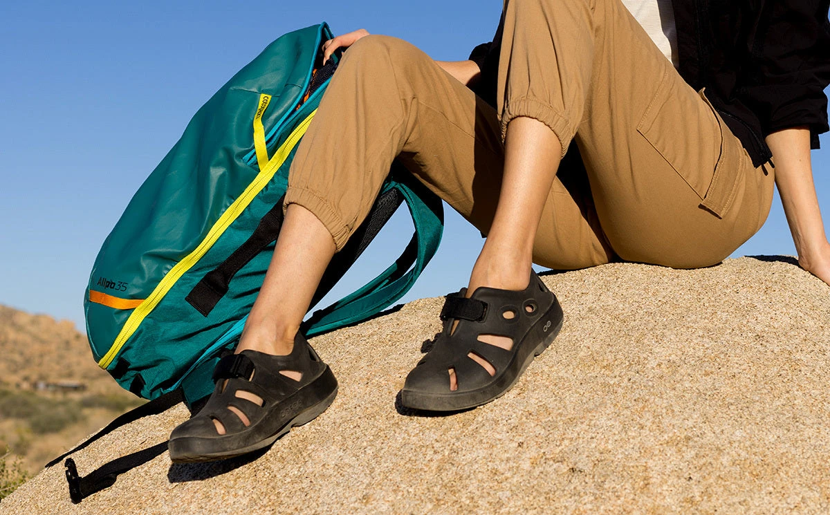 Introducing OOcandoo. Travel-ready, OOfoam™ technology and the patented OOFOS footbed take on a new versatile, lightweight and flexible design. The addition of a hook and loop fastener means you can easily slide these on while maintaining a secure fit for everything from creek crossings to global traveling. From post-hike campsite to urban adventures, the OOcandoo brings Active Recovery and the ultimate OOfeel to any excursion.
